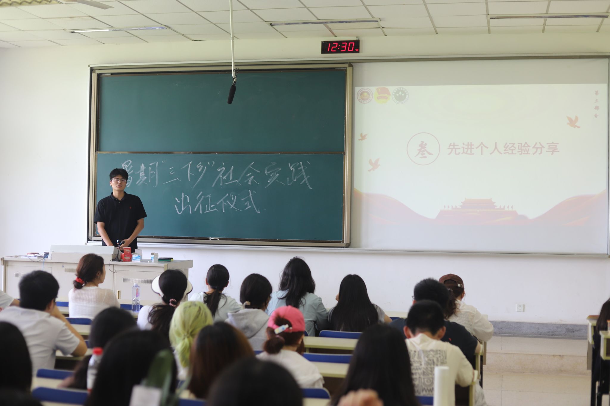 “实践出真知,奋斗正当时。”本次仪式邀请2024年江苏省暑期“三下乡”社会实践优秀个人刘正才同学分享宝贵经验。作为2024年暑期社会实践“山核桃小分队”负责人,他生动讲述了当时在安徽绩溪县开展深入调研的经历。他访谈了解百姓心声,走访探寻当地特色,参观感受当地发展变化,积极深入一线,与老百姓打成一片。这次实践成果丰硕,产出了70 余篇新闻稿及 1 篇高质量调研报告。他的实践分享为在场同学提供了鲜活范本。