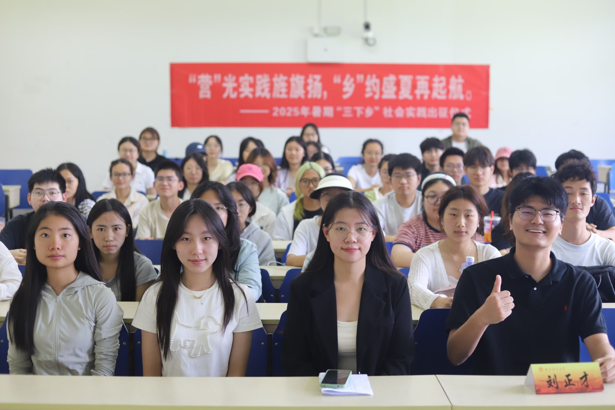 出征仪式上,团委书记徐璐老师详细汇报了学院2025年暑期社会实践活动的整体申报与筹备组织情况,希望同学们积极响应国家乡村振兴战略号召,以“受教育、长才干、作贡献”为宗旨,深入基层一线,以实际行动服务社会。