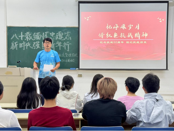 各班级分别围绕“铭记历史励初心,青春奋斗强国梦”(物流2501班)、“勿忘历史,吾辈自强”(物流2502班)、“烽火传薪·物畅其流”(物流2503班)、“承继忠魂志,强国青年行”(广告2501班)以及“忆峥嵘岁月,传红色抗战精神”(广告2502班)等主题,带领同学们重温那段波澜壮阔的历史,传承和弘扬伟大的抗战精神,为大家上了一堂生动的思政课。