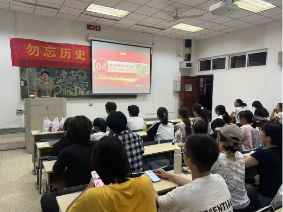 辅导员孙绪华老师从爱国主义教育角度出发,带领大家一同走进那段波澜壮阔的历史,深入学习了众多为了国家独立、民族解放,不惜抛头颅、洒热血的英勇事迹。他希望同学们铭记历史,肩负起新时代赋予的责任与使命,以先辈们为榜样,将个人的成长与国家的命运紧密相连,以饱满的热情、昂扬的斗志,勇做走在时代前列的奋进者、开拓者、奉献者。