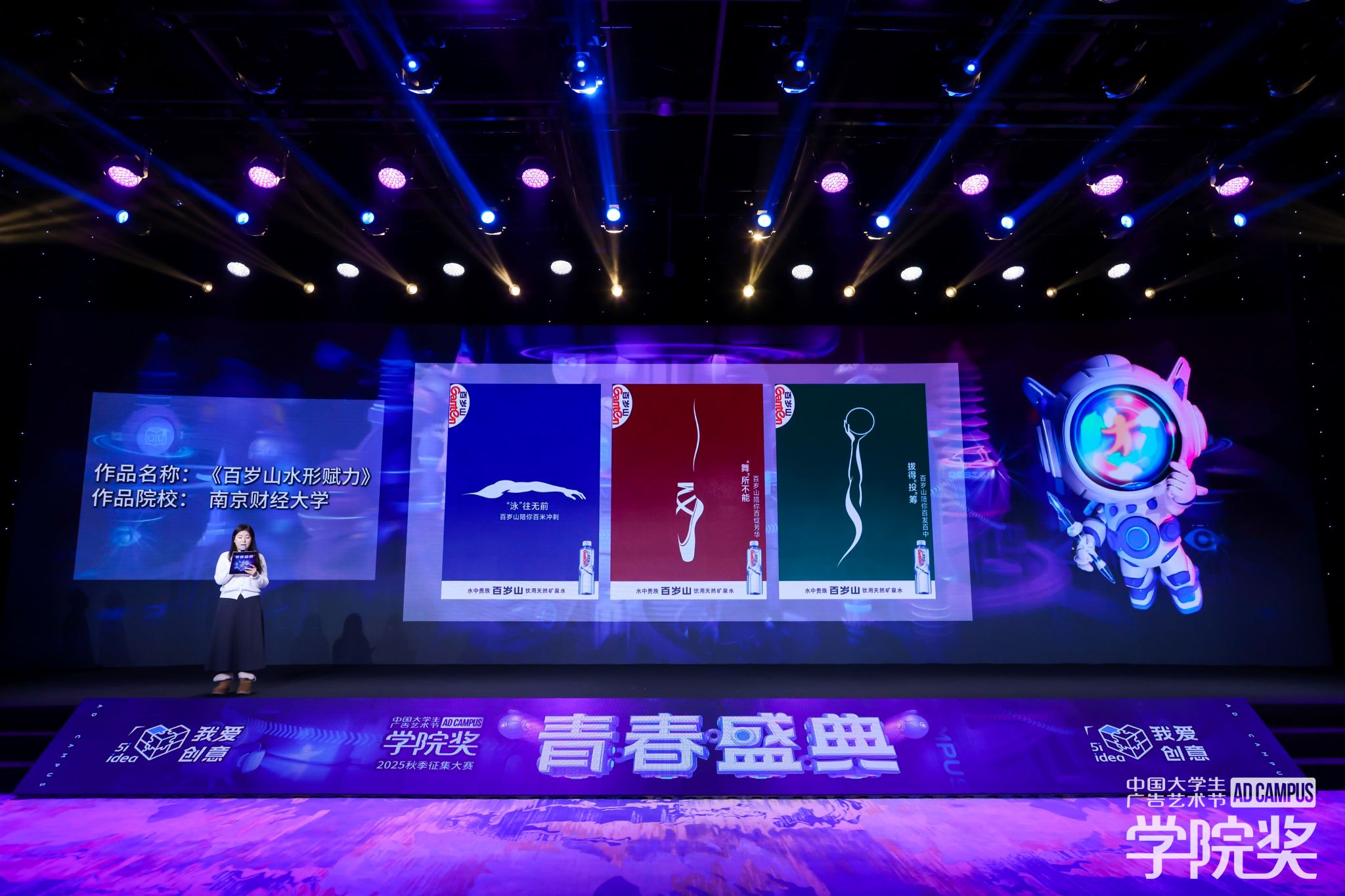 1、平面作品《百岁山水形赋力》(指导老师:刘明),荣获百岁山命题常规赛银奖,凭借独特的视觉设计精准贴合品牌调性;
