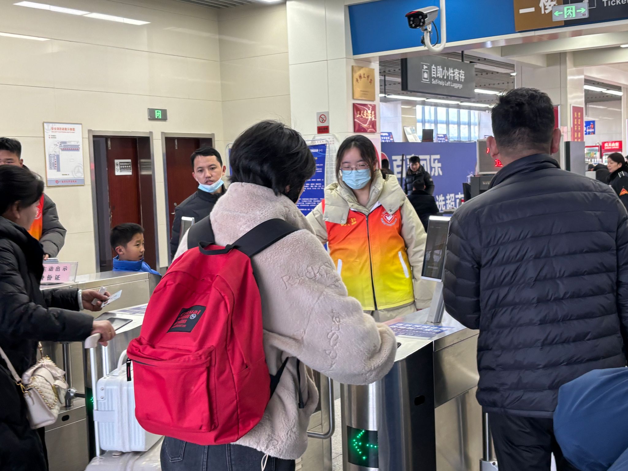 面对今年春运激增的探亲流与返乡潮,志愿者们全身心投入,用实际行动应对每一个挑战。在自动售票机前,面对不熟悉电子设备的旅客,他们手把手耐心教学,直到车票打印出来;在安检通道旁,面对汹涌的人流,他们时刻保持警惕,快速疏导,确保通道畅通无阻;在候车区,他们眼观六路,及时清理杂物、整理座椅,为疲惫的旅客维护整洁的休憩环境。当旅客焦急地寻找检票口、遗失物品甚至与家人走散时,他们总能第一时间冲上前去,协同站内工作人员迅速响应、妥善处置。这份春运途中的有序与安宁,是“萤光”志愿者们在今年春运期间用汗水和微笑换来的成果。