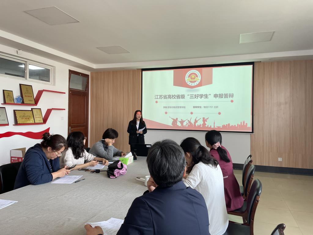 3月26日下午,bevitor伟德国际1946于德政楼535会议室举行我院2021年江苏省省级三好学生评审答辩会。党委书记黄建国、党委副书记张杰、及学工系统老师参加会议。