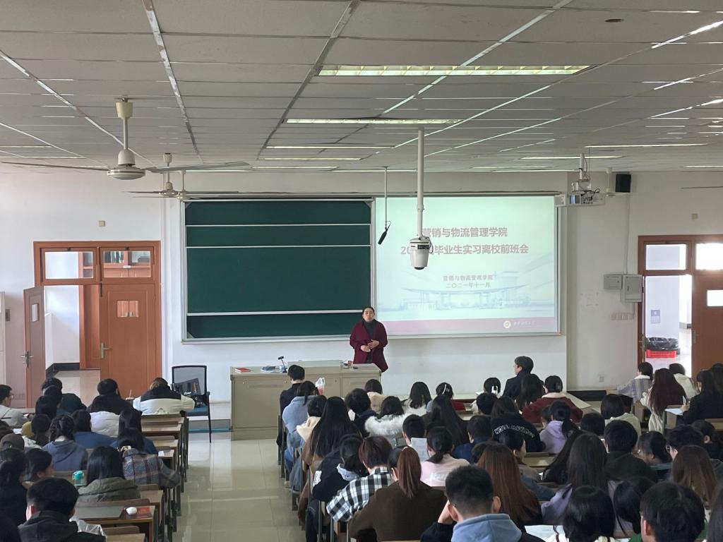 首先,黄建国书记从五个方面就毕业生就业实习等相关问题进行讲话。第一,要充分认识实习就业的重要性,认真完成学校的就业实习任务;第二,要认识到当前严峻的就业形势,树立正确的择业就业观,正确认识评估自己的能力,选择适合自己的岗位,耐得下心思踏实工作;第三,要注意实习期间的安全问题,严防电信诈骗,同时,也要遵守疫情防控相关要求,为他人和自己的安全负责,加强防护;第四,要树立社会责任感,作为新时代的中国青年要牢记总书记的嘱托,树立远大理想,砥砺奋进,承担属于自己的责任,在各个岗位认真完成自己的工作;第五,要与各方保持沟通联系,对自己的时间规划有明确的认识,秉持对自己负责的态度,及时完成各项安排,在就业实习遇到困难时,要及时与辅导员和父母联系,学院老师会提供相关的指导与帮助,保证实习工作的顺利进行。