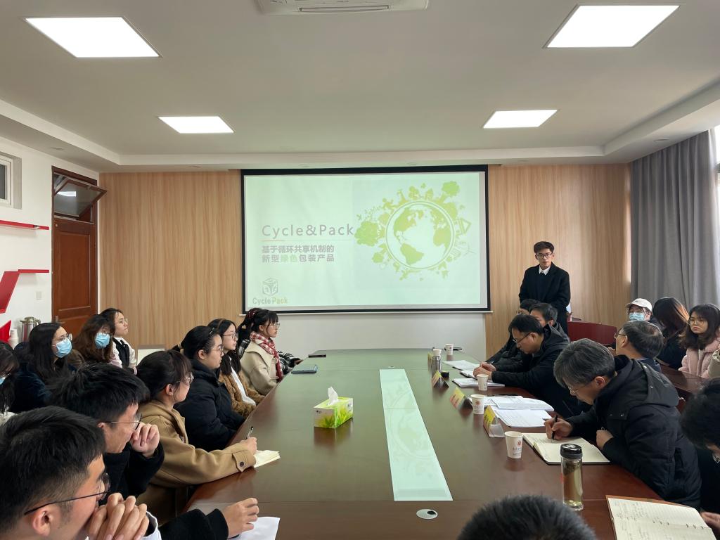 “基于循环共享机制的新型绿色产品”小组做项目展示
