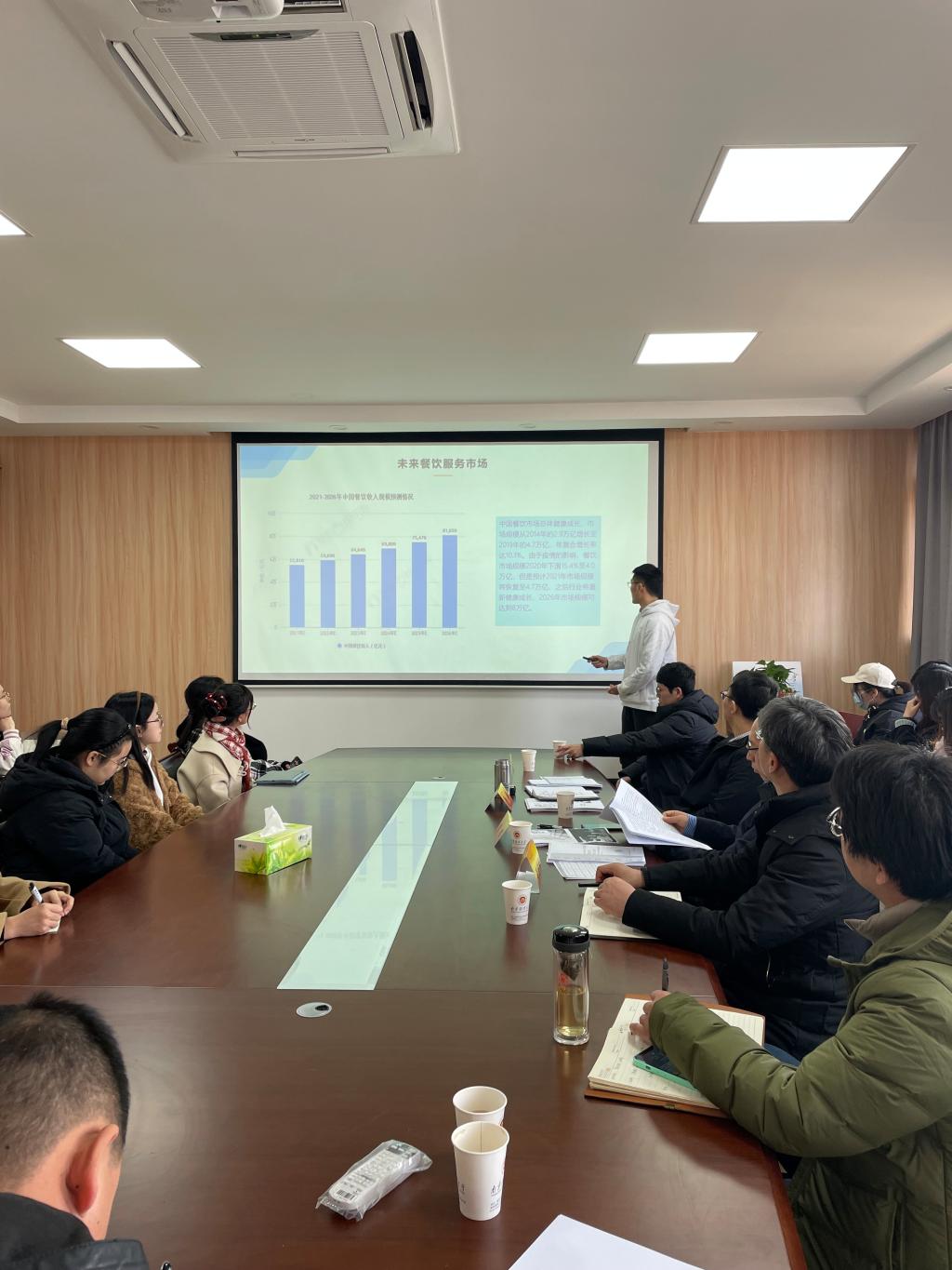 评审会上,入围校赛复赛的5支团队依次进行项目汇报。每支团队先后进行5分钟的陈述,各团队的项目负责人介绍了项目背景、市场分析、公司战略、运营模式、财务分析、风险分析等方面的内容,李华老师详细听取了各个团队的项目汇报,并针对各个团队的不同问题给出了针对性的修改建议。通过与评委的沟通交流,各团队更加明确了自己作品的提升空间,并表示会后将及时对作品进行认真修改,全力以赴参加我校2022年度“挑战杯”决赛。