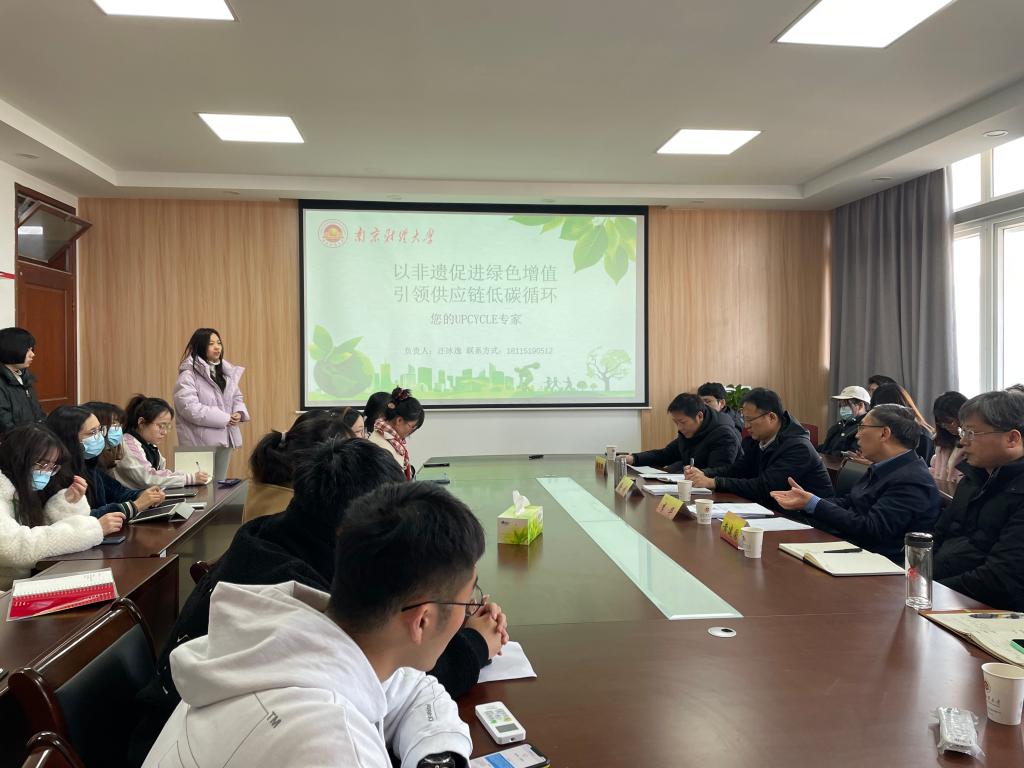 “以非遗促进绿色增值引领供应链低碳循环”小组做项目展示