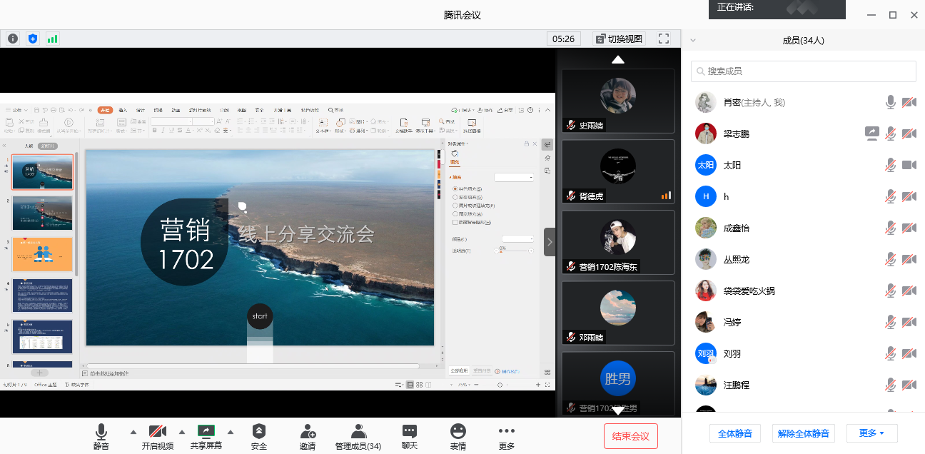 为了解同学们疫情期间在家的学习生活情况,同时帮助大家做好考研、就业等规划,让大家明确努力方向,我院2017级各班于6月15日到19日举行了六场线上交流分享会。班会由辅导员肖密主持,2017级231名同学参加此次班会。