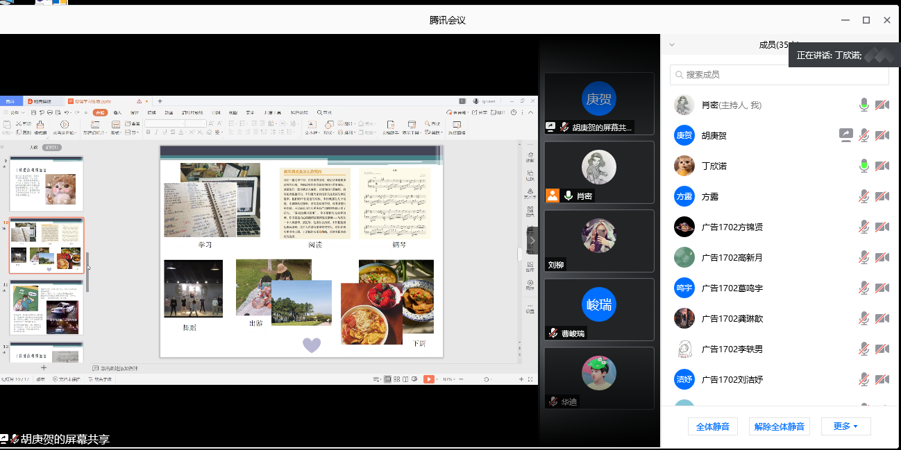 交流会上,每位同学都分享了自己在家的生活状态以及对上网课的一些想法,交流了大四学年及毕业以后的规划,准备就业的同学表示会用暑假去实习,提升实践能力,选择考研、出国深造的同学表示自己会按照学习计划坚持复习。辅导员肖密老师给予每位同学积极的鼓励并提供了一些建议,希望同学们都能利用好这段宝贵的时间,坚持学习,保持良好的学习习惯,为自己的未来冲刺。同时尽可能丰富在家的生活,加强锻炼,做好防护。