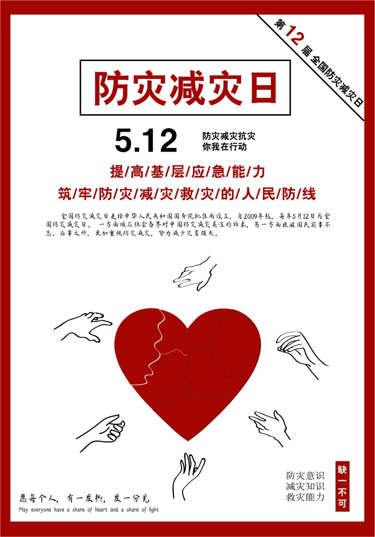 5月12日是我国第12个全国防灾减灾日,主题是“提升基层应急能力,筑牢防灾减灾救灾的人民防线”。bevitor伟德国际1946紧扣“提升基层应急能力,筑牢防灾减灾救灾的人民防线”的活动主题,扎实开展全国防灾减灾日活动。