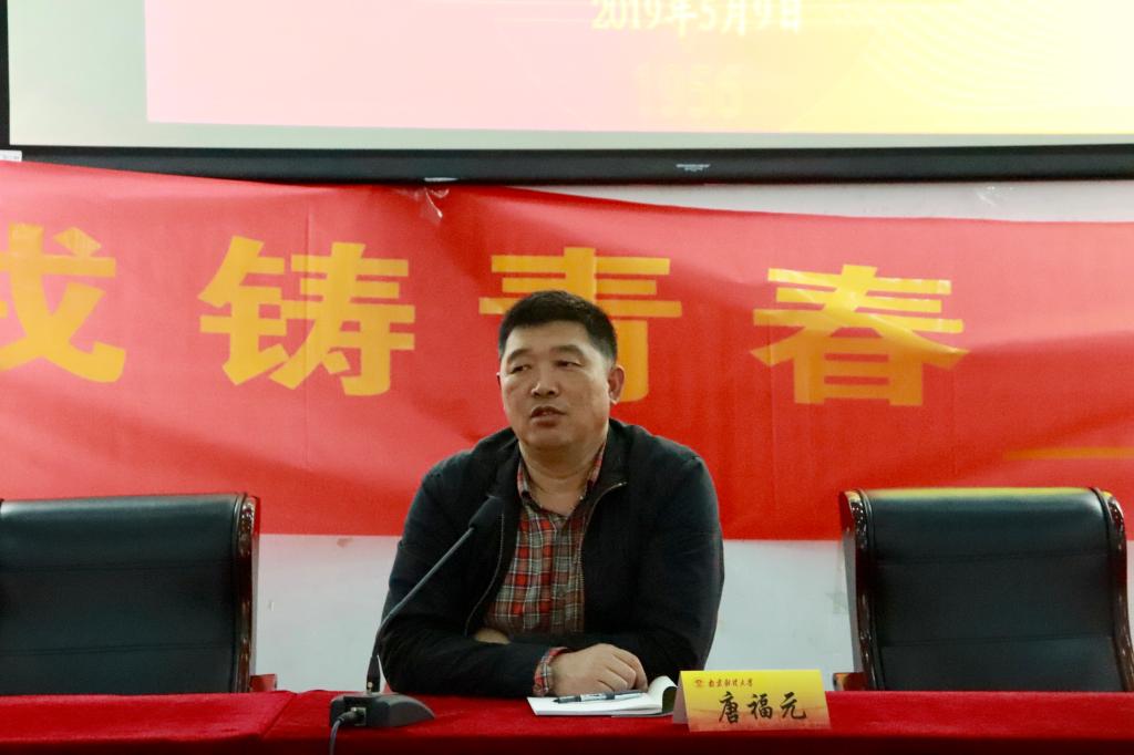 唐元福部长介绍了南京市、我校征兵相关精神,并详细讲解了入伍条件、体检、政审和有关优惠政策。他告诉同学们:征兵入伍是一项全家受惠的制度举措,是一次丰富人生经历的难得机遇,是一份社会认可的工作履历。征兵入伍是小我的历练,大我的升华。唐部长的讲话极大鼓舞了同学们的士气,坚定了同学们“天下兴亡,匹夫有责”的决心和信念。他号召同学们积极携笔从戎,在人民军队这个大舞台上书写人生的壮丽篇章。