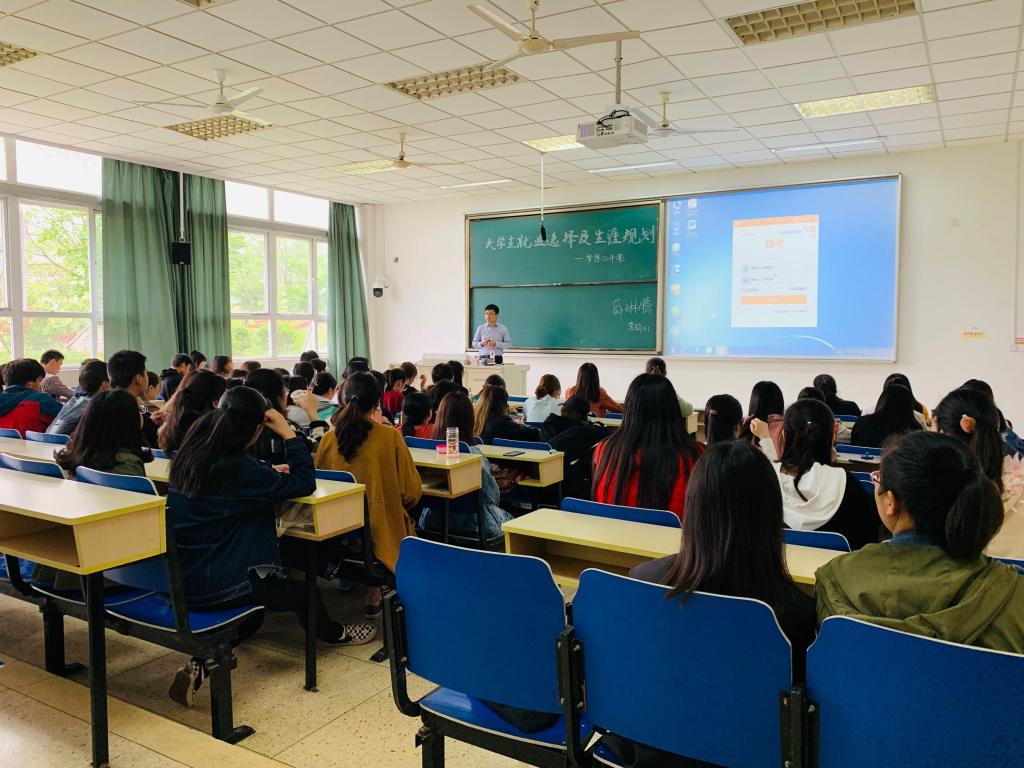 4月23日下午,bevitor伟德国际1946在专四114举办了“大学生就业选择及生涯规划”专题讲座。营销081班班长、浙江雅达置业有限公司营销总监薛琳腾应邀为学生作讲座。2016级同学聆听了讲座。