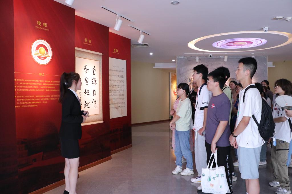 跟随着引导员,同学们来到四楼校史馆,聚精会神地聆听学校发展历程,对学校的历史沿革、文化脉络有了更深层次的理解。一幅幅照片、一件件实物,一段段文字,让新生真切感受到学校惊喜的发展成就是一代代南财人接力奋斗的成果。让才步入南财的同学们对未来的学习生活充满了信心。
