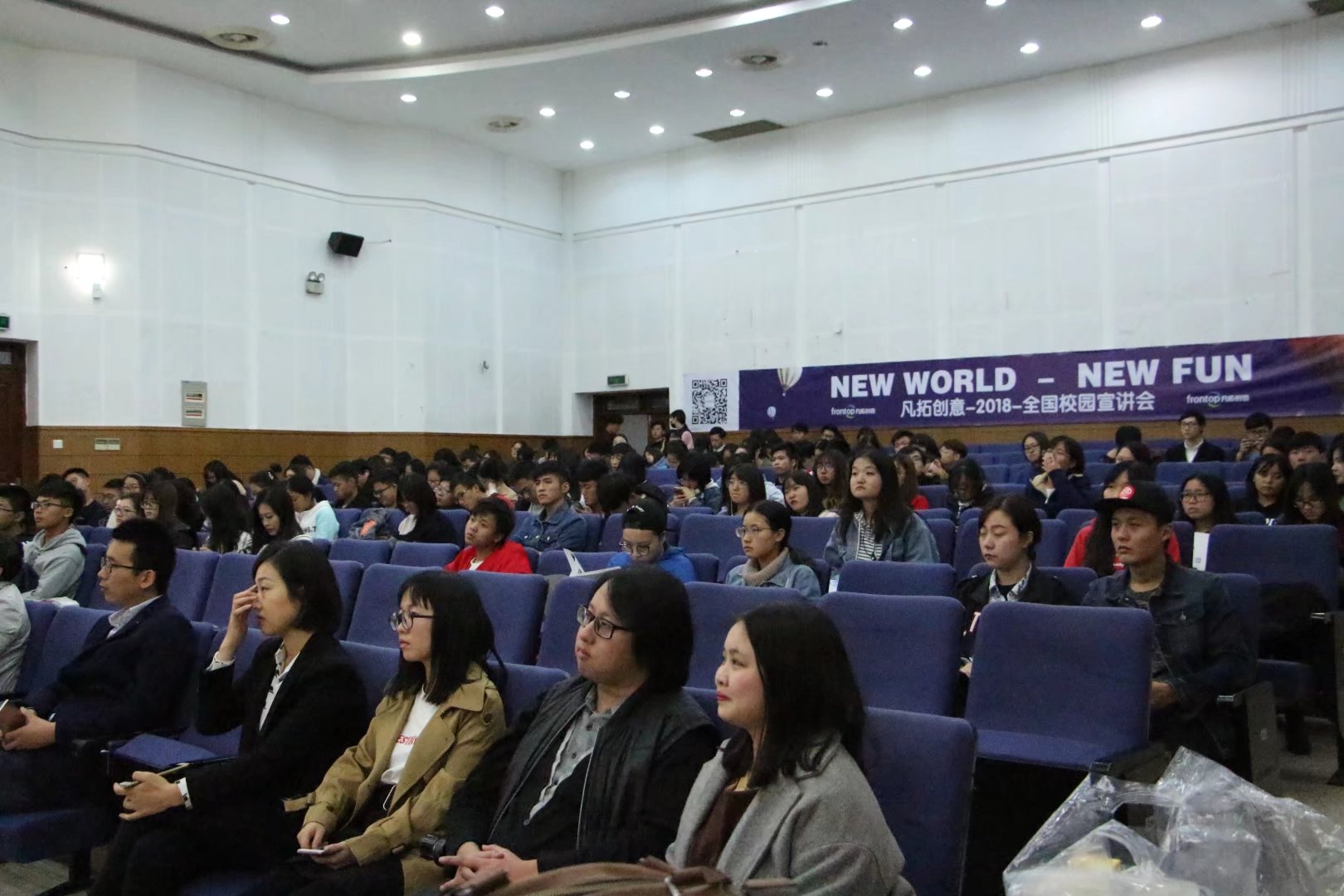 人力总监王庆在接下来的发言中着重介绍了凡拓的企业文化与人才培养方式。“在未来十年里成为世界领先的数字创意企业”的目标、“让每个人享受数字新体验的乐趣”的使命及“专业,专注,高效,分享”四心合一赢得在场人员的阵阵掌声。他说,公司虽以绩效结果为导向,但对于毕业生会有一年的见习期,毕业生训练营,并且会有导师一对一专业辅导和内部轮岗,公司实行优秀人才双向晋升制,两大职业通道让人才能有广阔的舞台。最后是业务介绍及校招简介。王庆先生主要介绍了公司现在的校招职位及薪资福利待遇,并耐心为我校有申报意向的学生解答疑难。