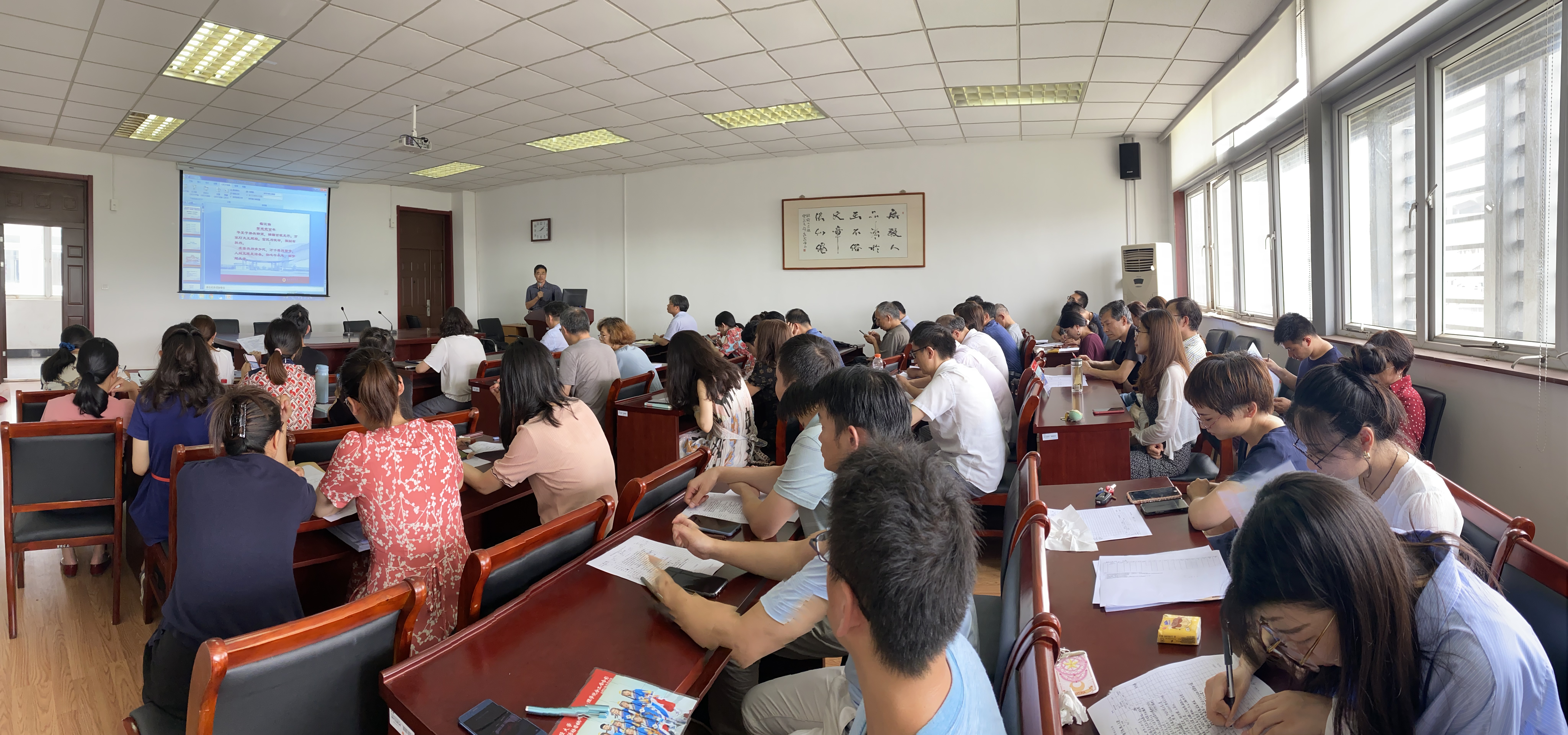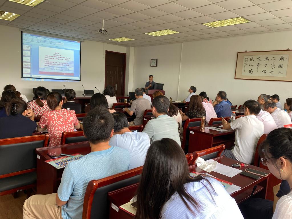 张教授着重从以史增信、以德树人、以艺授业、做大先生四个角度深入阐述了如何将党史学习教育与师德师风建设相结合,加强学院教学管理、增强教师立德树人的职业使命等问题。张教授还从中国传统文化视角解读了课程思政的重要意义,以及如何正确把握课程思政的科学内涵和课程思政的科学设计方法。张教授用以自己的诗词作品为例,讲述了党史学习和师德师风培育、学生思想政治教育之间的关系,用党史故事和自己的经历,让与会教师切实的感受到了共产党员的信仰,展示了在课程设计和课堂教学中融入思政教育元素能够达到春风化雨、润物无声的诗意效果。