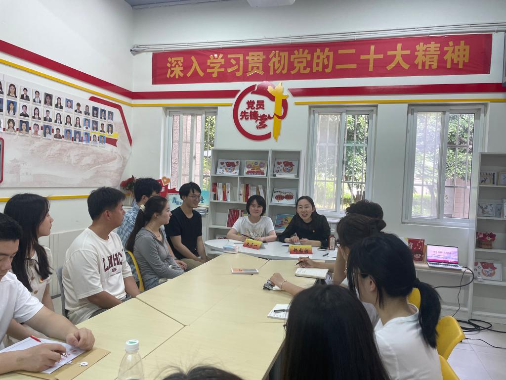 2024年5月24日,学校党委教师工作部部长、本科生第一党支部政治辅导员郝园园走进8号站“党员先锋营”学生工作站与支部学生交流座谈,并讲授党纪学习教育专题党课。校党委教师工作部副部长朱正一,支部书记殷漫漫陪同。